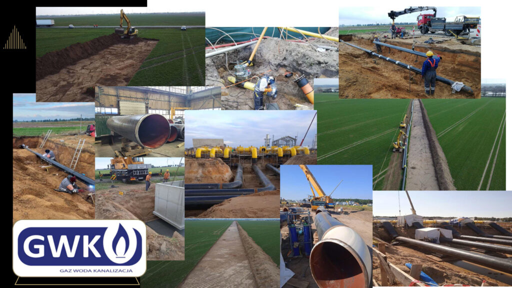 – spawanie montażowe rurociągów w zakresie średnic do DN1000 (obsługa sprzętem ciężkim typu duże koparki po stronie GWK, dźwigi boczne do układki po stronie Klienta),